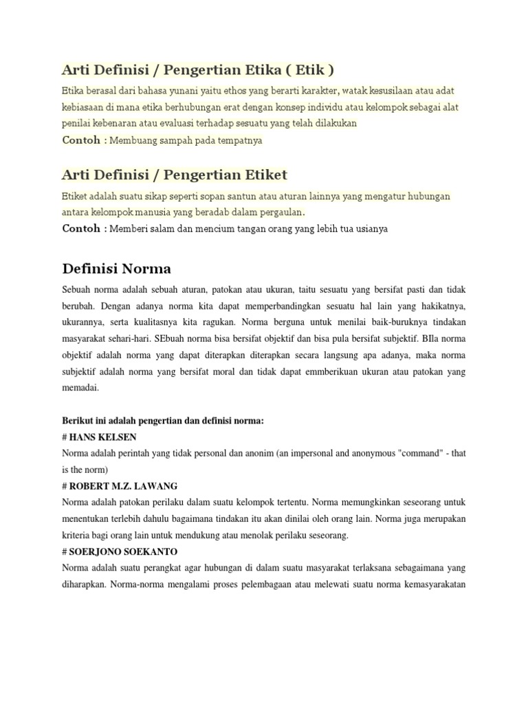 Pengertian Etika Moral Dan Etiket from s1.studylibid.com Berikut akan dibahas mengenai apa itu pengertian etiket yang perlu diketahui. Pengertian etika menurut para ahli. Terminius technicus & manner and custom. Pengertian etiket gambar teknik dalam sebuah gambar teknik kita akan melihat satu bagian pada gambar yang memuat beberapa keterangan teknis. Adalah perilaku yang dianggap pas. Ada beberapa pengertian dari kata etika, di antaranya. Semoga bermanfaat dan jangan lupa tekan tombol like and subscribe. Diantaranya mengemukakan etika kedalam dua pengertian yakni: